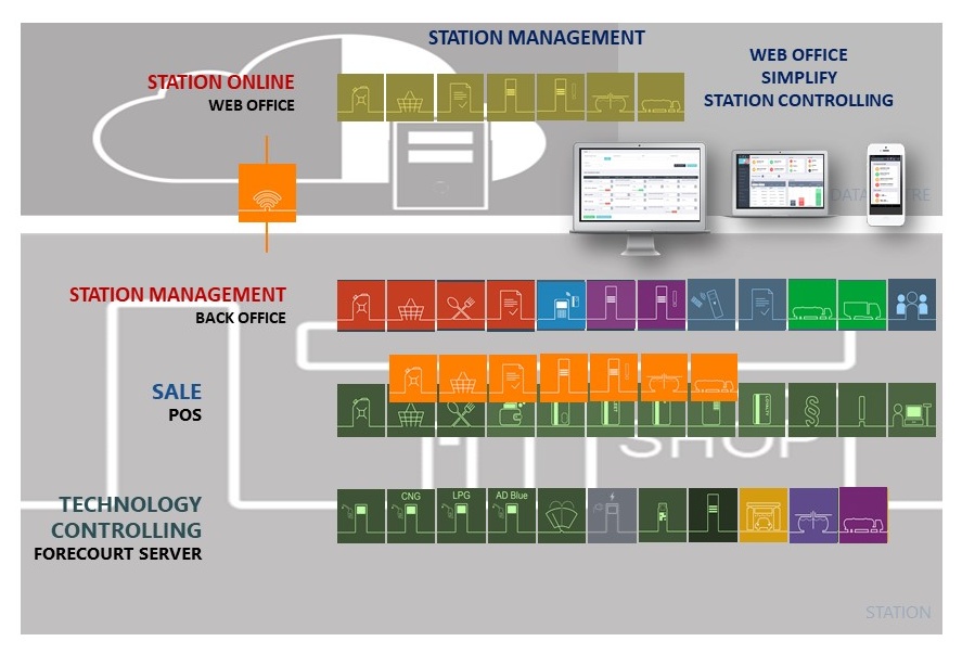 Head Office Systém může být napojen nad stanicí vybavenou systémem EuroShop3 i nad bezobslužnou stanicí vybavenou pouze tankautomatem Cardmanager nebo CardManager Compact. Aplikace Web Office je komfortně ovladatelná nejen z počítače, ale také z tabletu i mobilního telefonu. Uživatel Web Office tak má přehled nad děním na čerpacích stanicích kdykoli a kdekoli. Získává tím také možnost odkudkoli své stanice řídit.